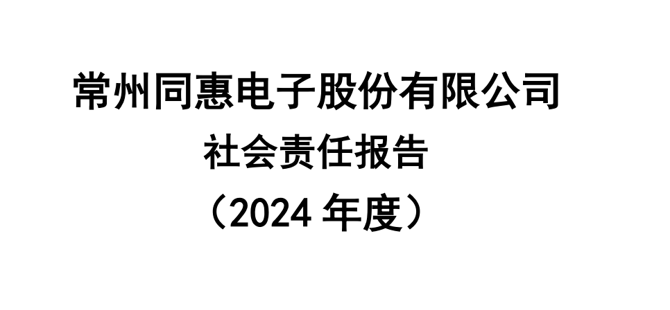 常州同惠电子股份有限公司社会责任报告(2024年度)