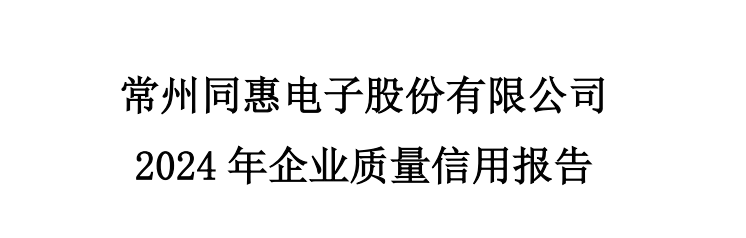 常州同惠电子股份有限公司2024企业质量信用报告