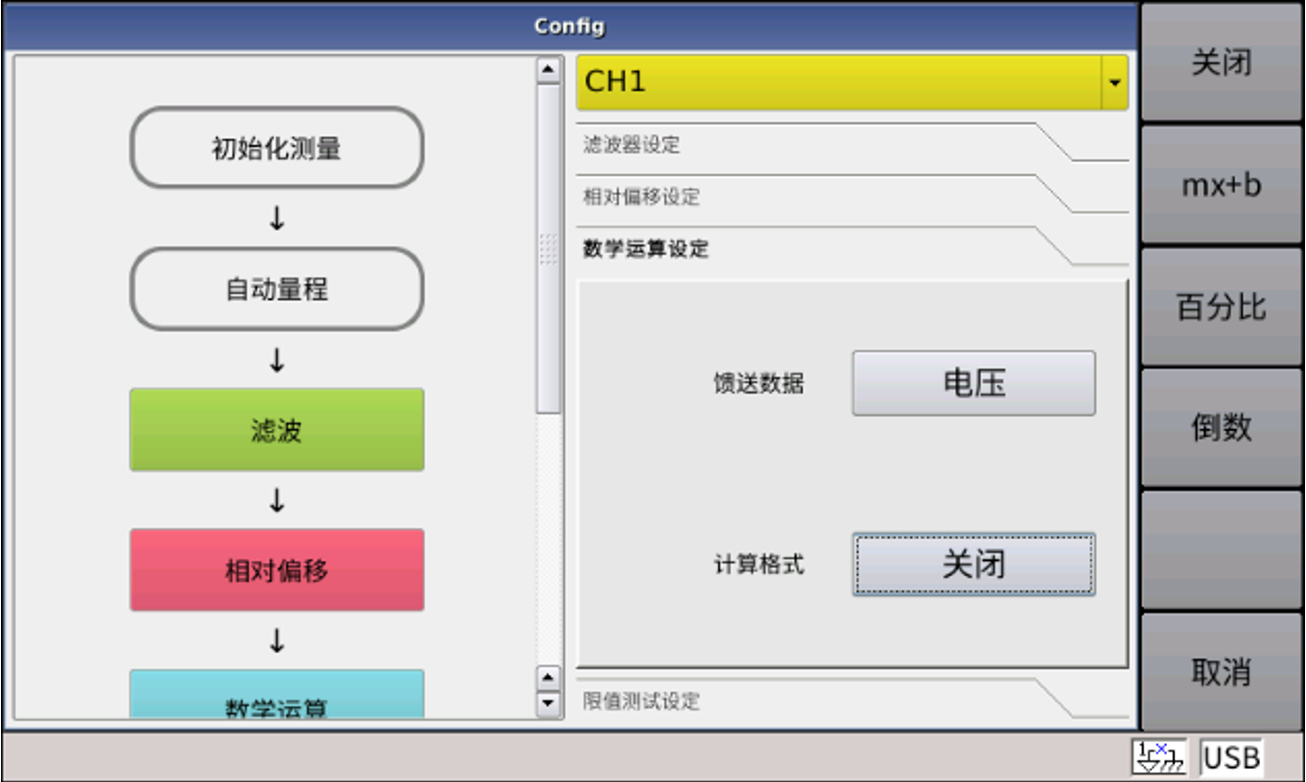 测量结果可实现三种数学运算:mx+b、百分比、倒数。
