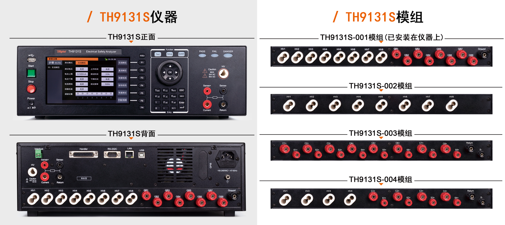 TH9130S/TH9131S系列多通道高功率耐压接地测试仪包括以下几种类型: