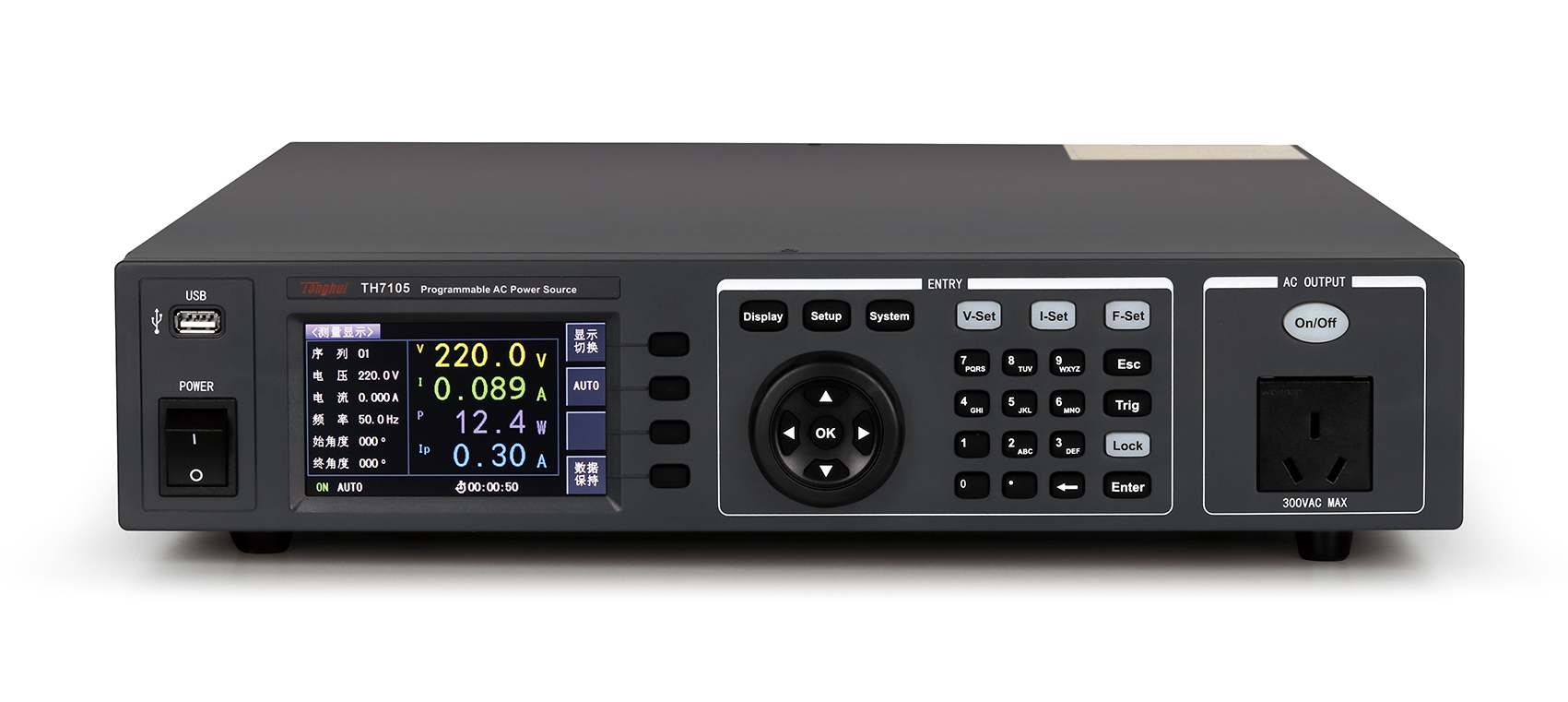 TH7100系列可编程交流电源采用线性放大技术设计,使其具有高稳定性、低杂波的卓越性能以适应高精密的电源测试需求,如网络通讯、音视频设备、监控设备、以及模拟各种电源的正常和异常的交流输入情况等等。