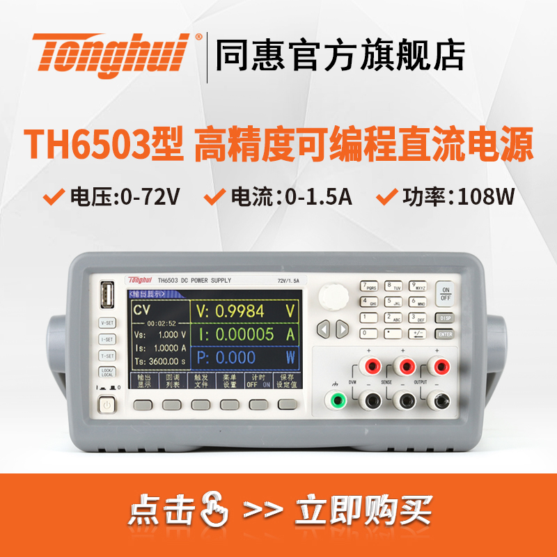 TH6500系列高精度可编程直流电源涵盖了6个型号(96W-216W),其最突出的优点是具有超高的精度和分辨率以及极快的电压上升速度。仪器内置一块电压表和欧姆表,方便用户测试外部电压和电阻。